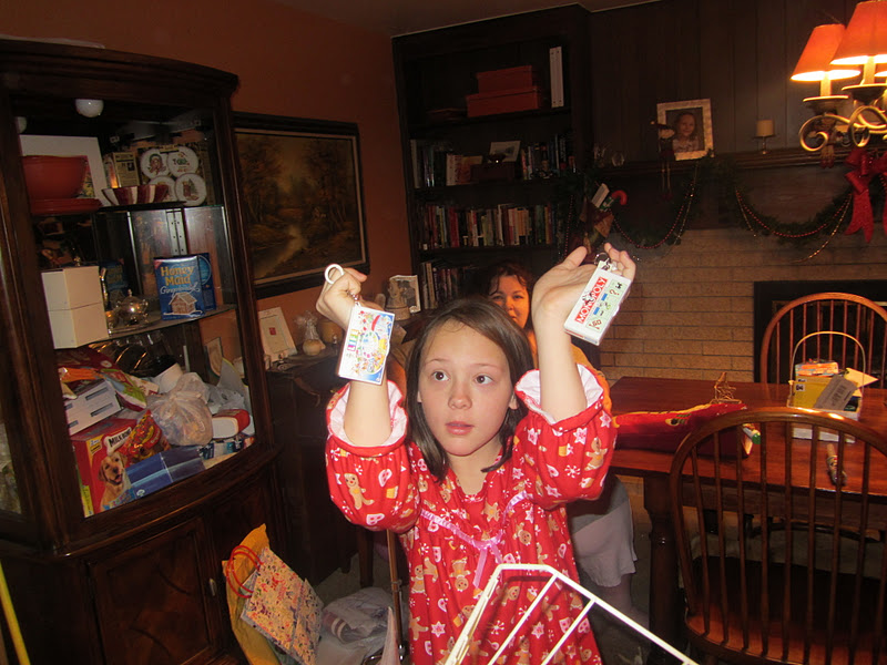 She ran down the stairs and then back up to hurry us along. I knew it was a good sign when she started shouting, "I GOT A PEACE SIGN TABLE AND A ZEBRA PRINT LAMP!" at the top of her lungs! I knew right then that she was going to be a happy camper because, if she was THAT excited over a table and a lamp, just wait till she saw what else was under the tree haha!